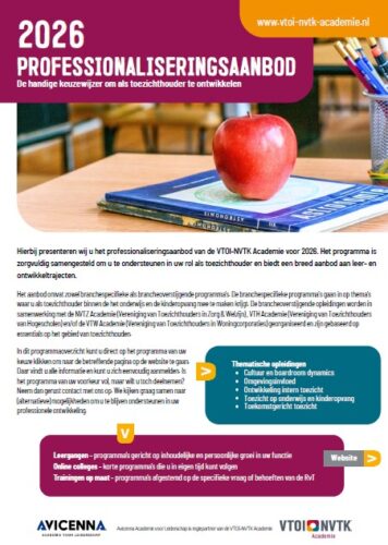 Naast het fysieke opleidingsaanbod biedt de VTO3 Academie diverse online colleges aan rondom thematieken en actualiteiten binnen de zorg en welzijn, maar ook over het toezichthouden in het algemeen. U kunt deze colleges online aanschaffen en bekijken waar en wanneer het u uitkomt. In maximaal 1,5 uur praten experts u over een specifiek thema bij.